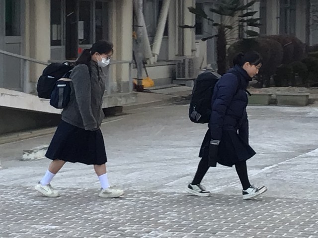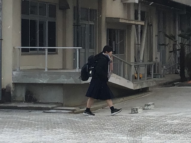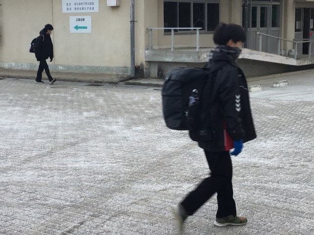 雪が降ってきましたね。青空は見えていますが積もるのかな?