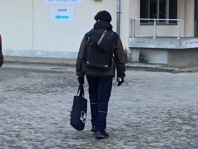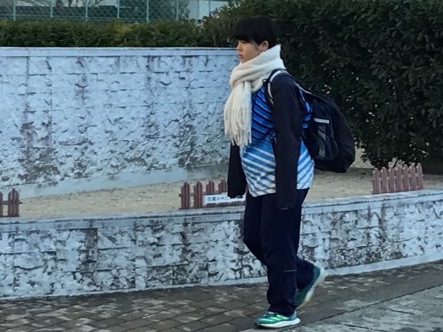 雲が多い朝です。白鳥が二羽頭上を通過。