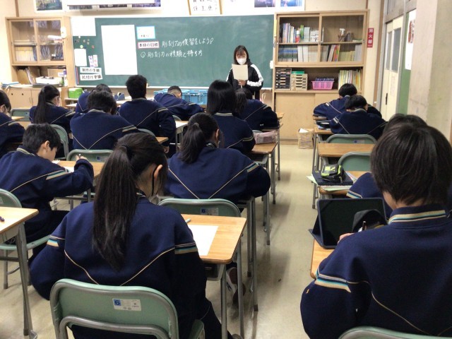 ワークシートで彫刻刀の使い方を学習です。安全に制作できるように!