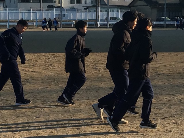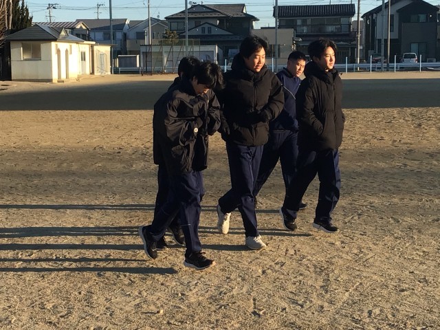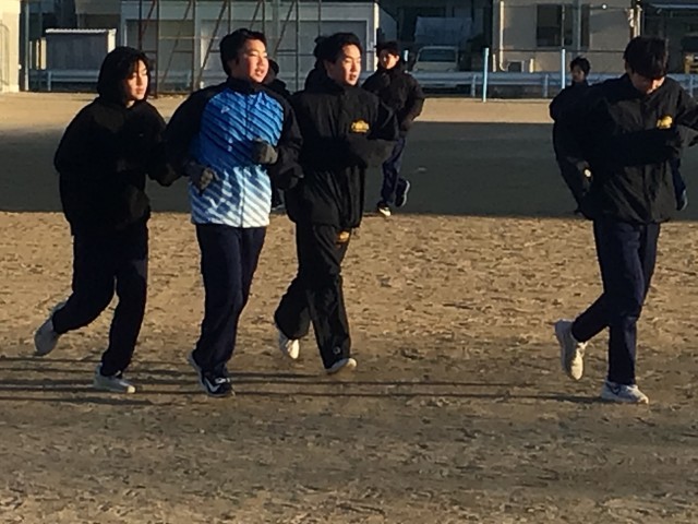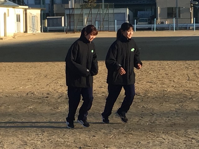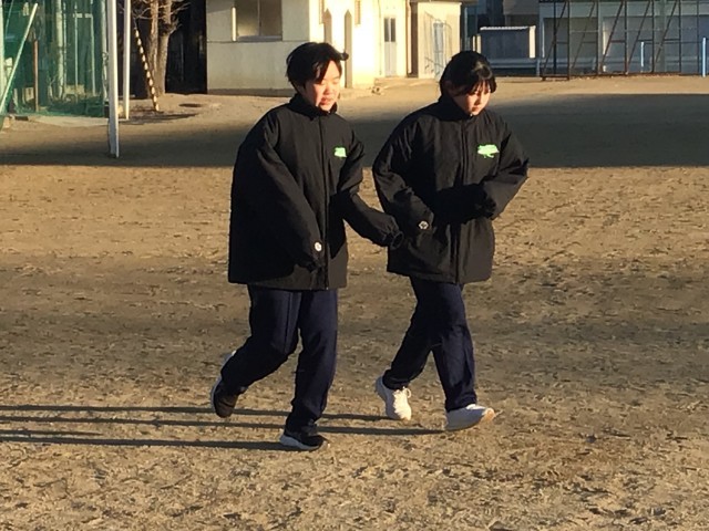 朝日を浴びて運動です。