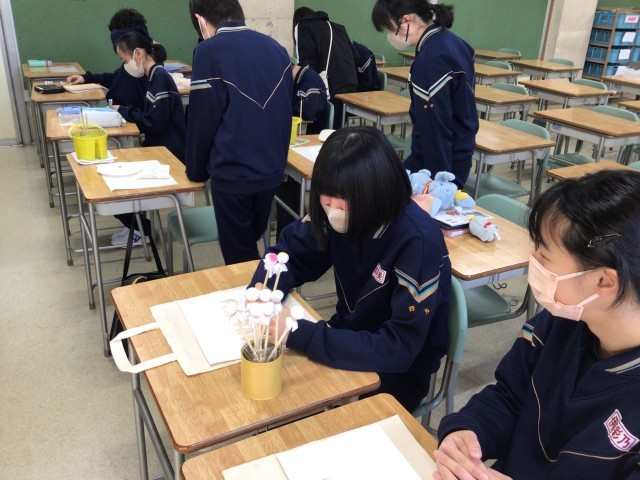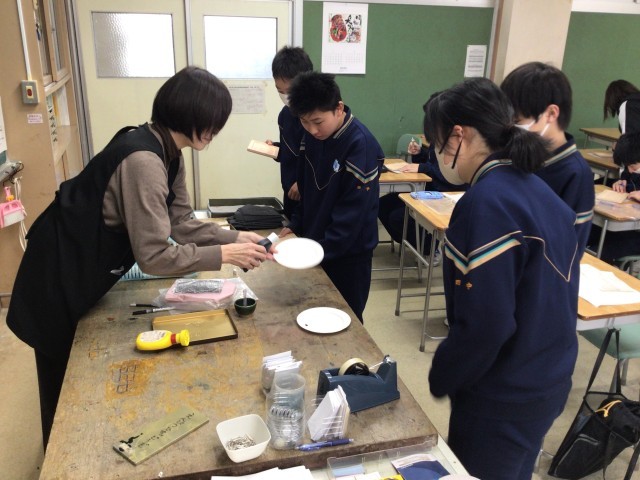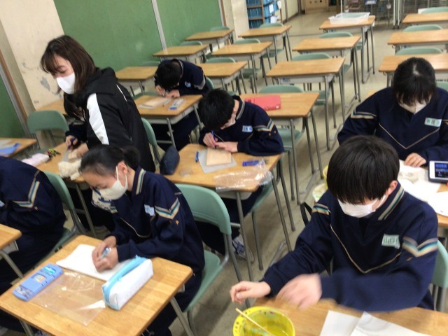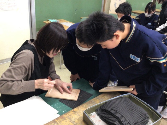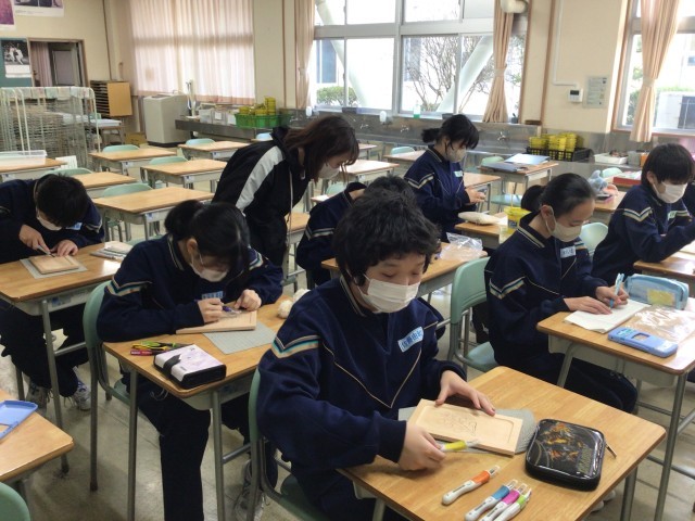 学年ごとの作品制作です。彫刻刀、丁寧に!