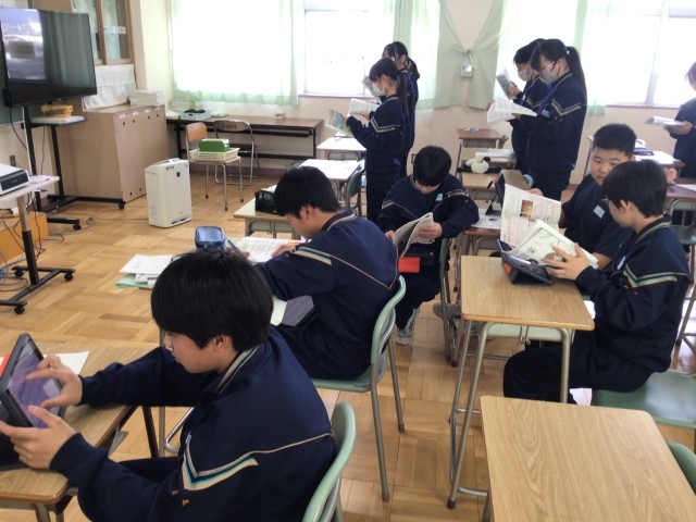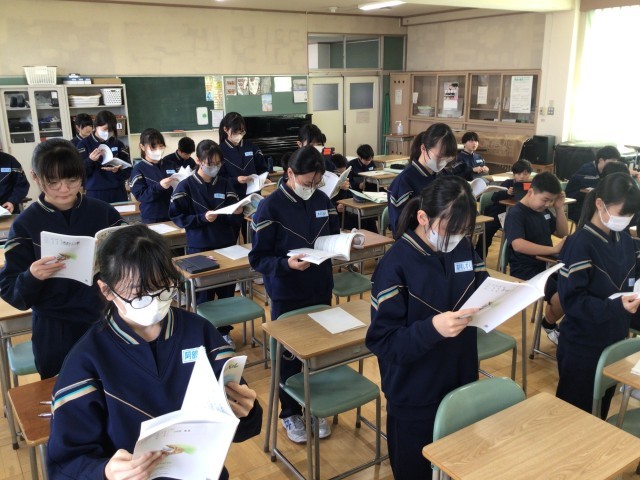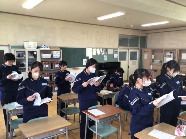 卒業式歌、パートに分かれて練習です。待ち時間で学習帳、本日提出!