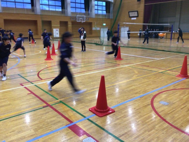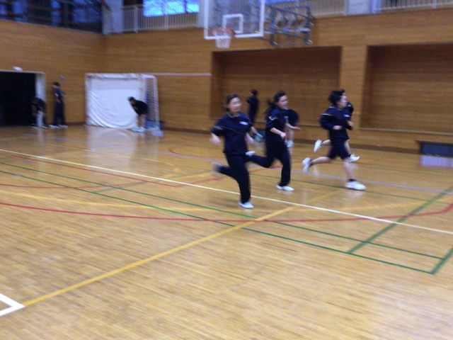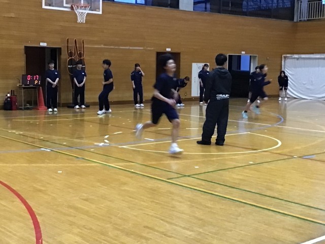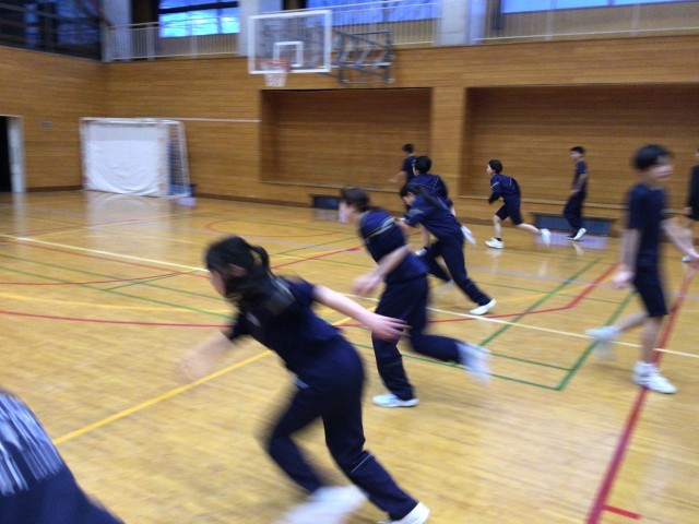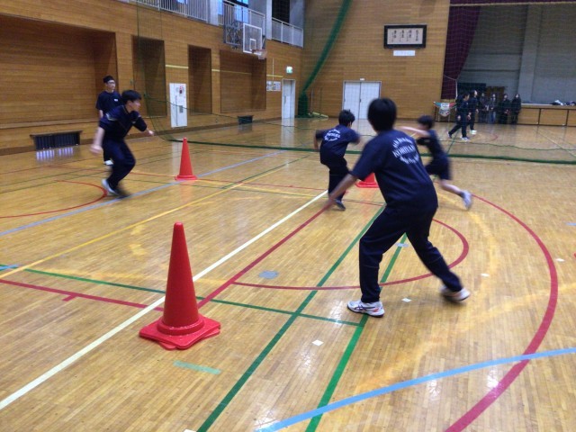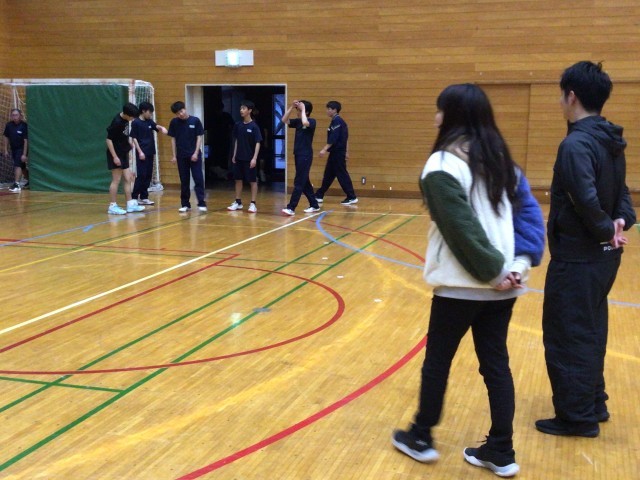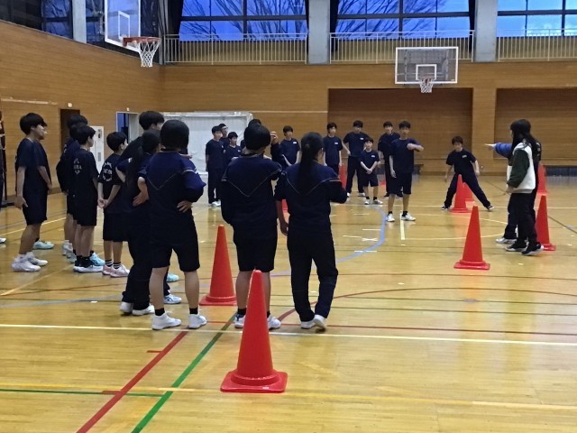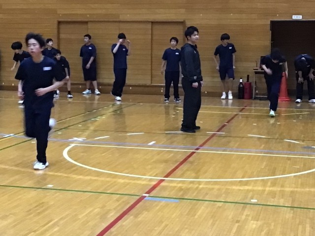 ハンドボール部、バスケットボール部、お互い負けられませんね!それぞれの部のメニューを体験!