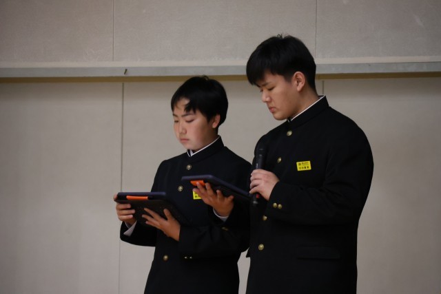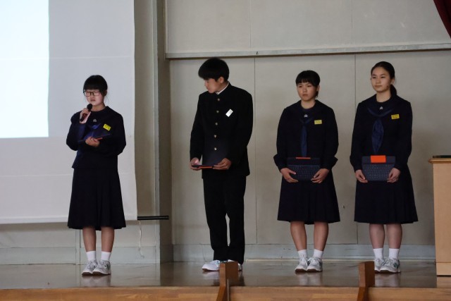 生徒会役員、各委員会の専門委員長から活動内容が説明されました。