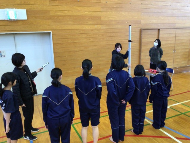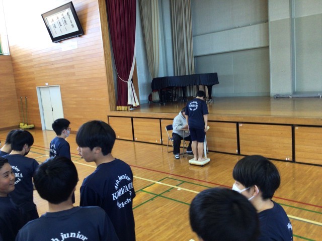 身体測定をやっています。身長、体重、去年からどれくらい成長しましたか?視力、聴力はこれからも大切にしていきたいですね。