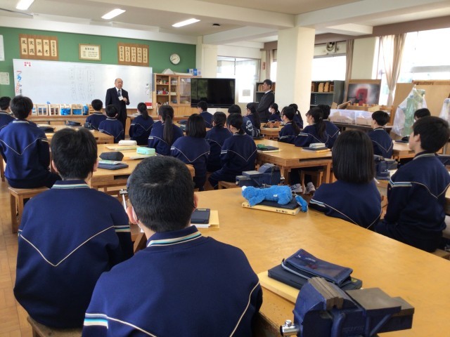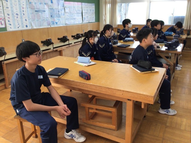 2年生の技術はスーパーティーチャー大内先生と教頭先生が担当します。大内先生は週に一度の勤務です。