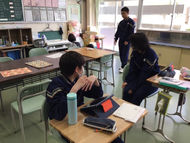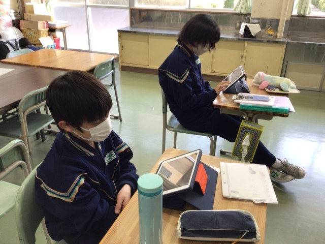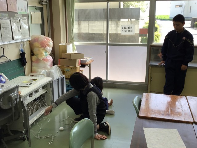 3年生修学旅行アンケート。1年生タブレット整備。これで調べ学習できますね!