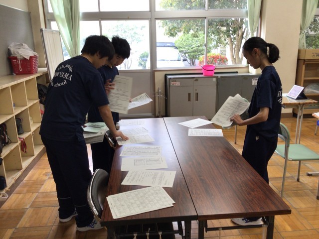 保護者懇談会、お家の人に渡す資料を帳合いです。
