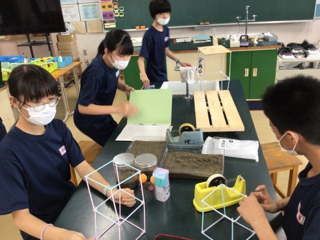 地震の揺れ、風車の効率的回転、それぞれのテーマで先行実験です。