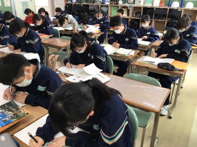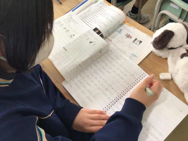 ノートづくり。プリントも貼ってまとめ方上手ですね!