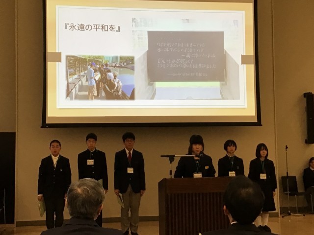 市役所にて報告会です。各校の代表と一緒に。平和について考えました。
