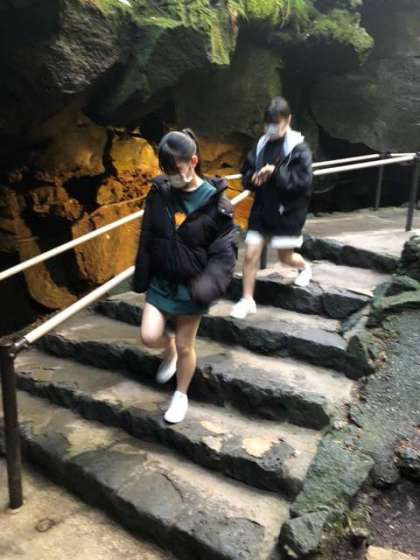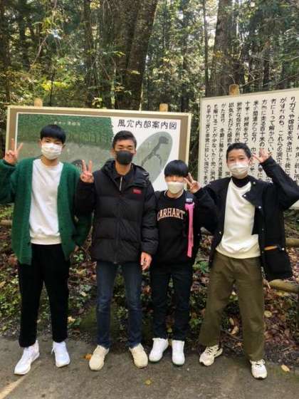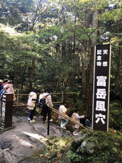 1組と2組は富岳風穴に来ました。地下に降りていくとひんやりとした空気に包まれました。鍾乳洞もあって、自然の冷蔵庫を満喫しました。