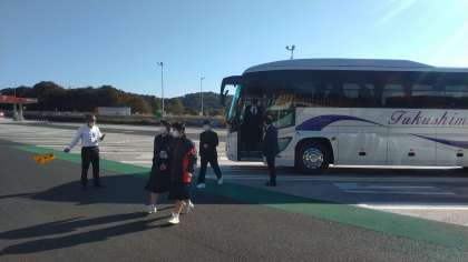 2学年は国見SAに到着しました。みごとな青空です。