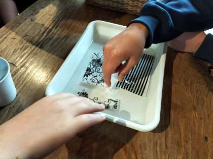 シールを濡らして、カップに転写します。丁寧に、丁寧に…。