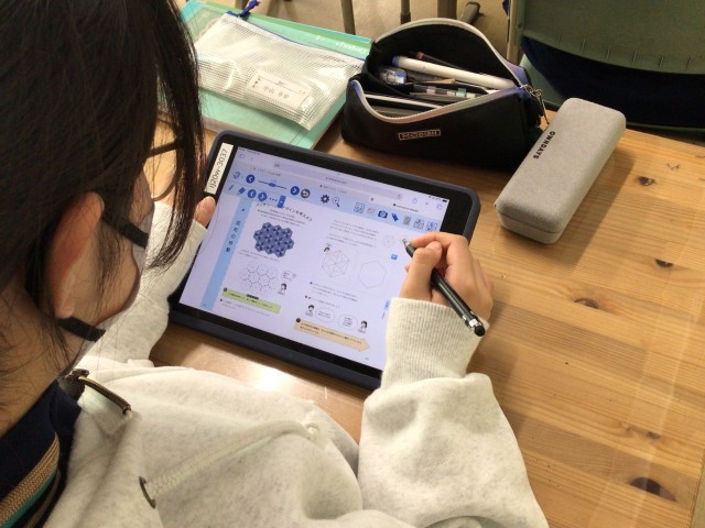 合同な図形を敷き詰めて平面をつくります。デジタル教科書のメリットを活用して!