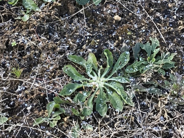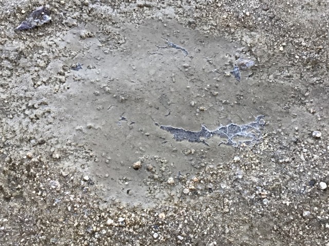 冬らしい朝です。水たまりに氷!