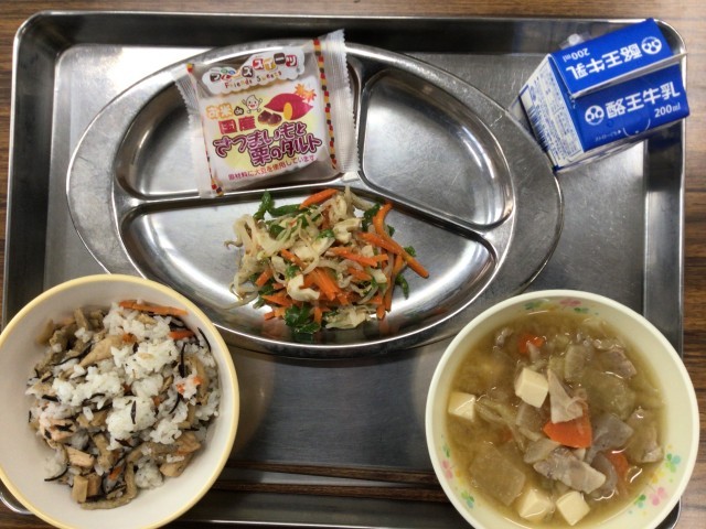 秋の混ぜご飯と秋野菜の豚汁!