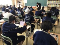 研修授業,先生方が参観です。絵の具の濃さを調節して!