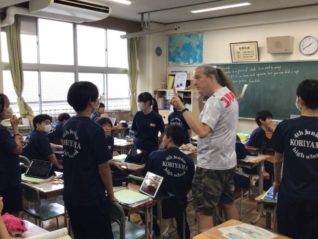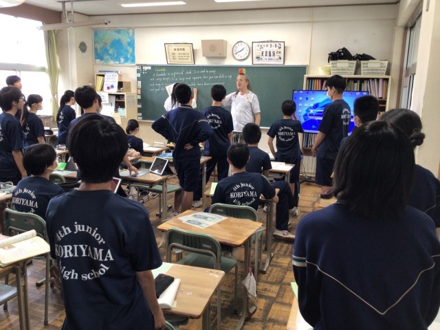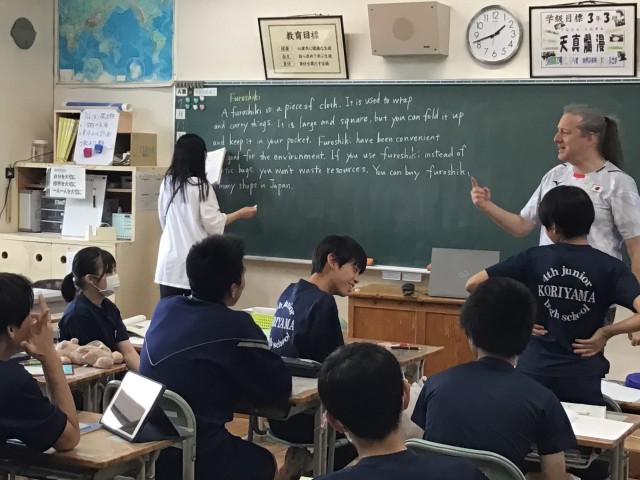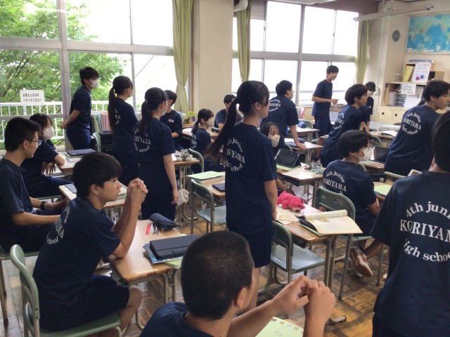 おにぎりのお気に入りの具4つなど,英語の質問に答えよう!答えられないと立ったまま?!