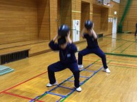 キーパー別メニューで特訓中。ゴール前の崩し、移動のタイミングを確認!