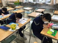 テスト返却後の様子。さて、結果は?ワーク提出に向けて早速取り掛かりましょう!