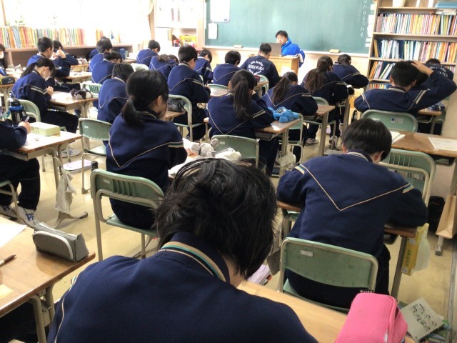 金曜日の時間割1,2年定期テストⅣ①~④、3年生実力テスト①~⑤