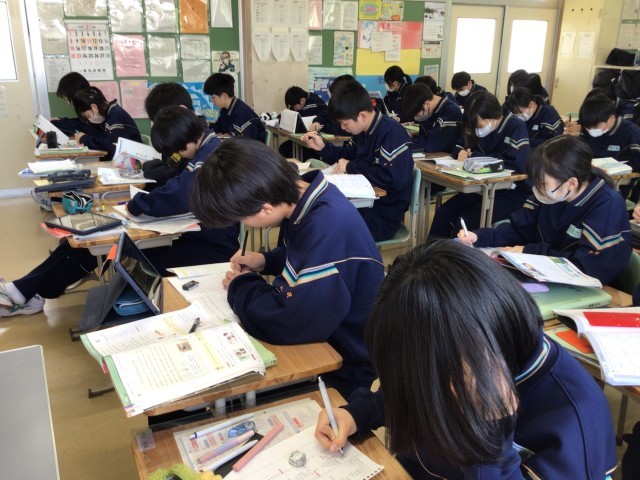 木曜日の時間割1,2年定期テストⅣ①~④、卒業式全体練習⑤⑥第4回PTA役員会