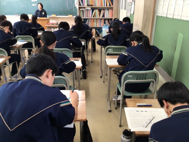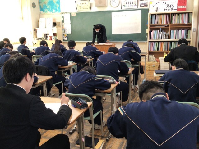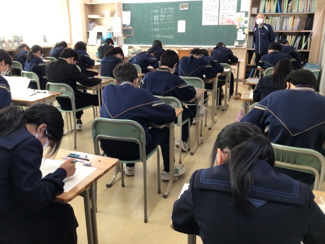 金曜日の時間割1,2年定期テストⅣ①~④、3年生実力テスト①~⑤