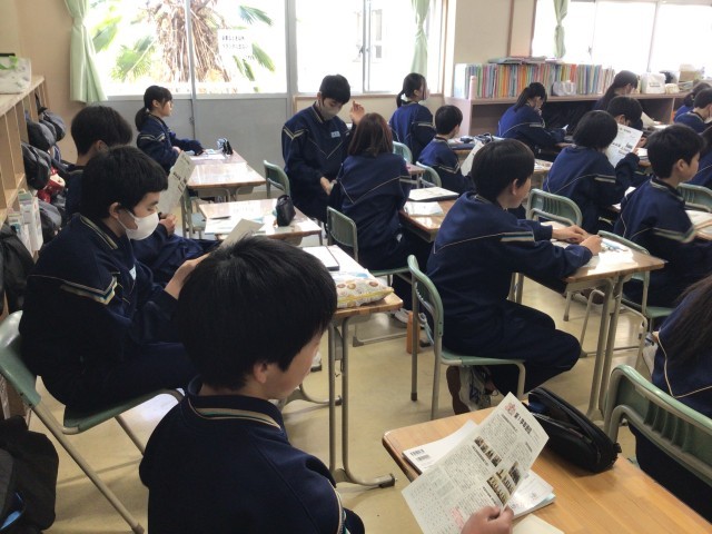 最後の集会ですね!学級代表の発表、各先生のお話。