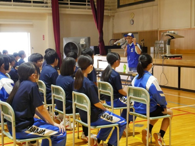 2年生は薬物乱用防止教室で、地域コーディネーターでもある瀧田勉さんを講師にお迎えして薬物の恐ろしさ、誘惑に負けないことの大切さを学びました。