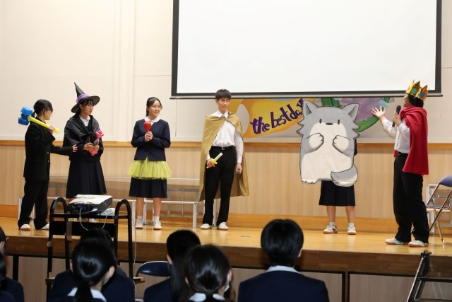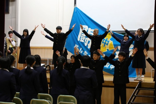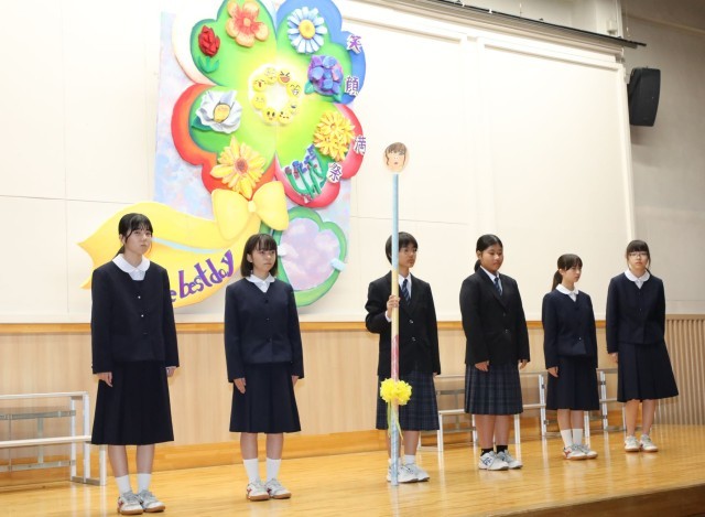 追悼の儀終了後、予定通りに文化祭「友垣祭」が始まりました。今年のテーマは「笑顔満祭(えがおまんさい)~the best day~」。テーマをイメージした美術部のステージアート披露から始まり、工夫を凝らした開会行事となりました。