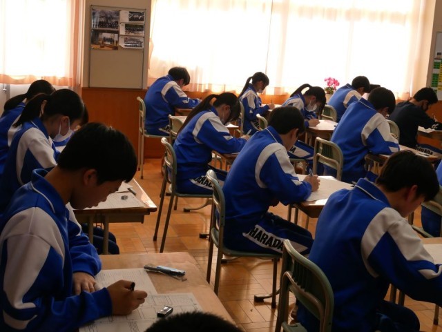 本日は国・数・英・理・社の5教科、来週1月26日(月)は音・美・保体・技家の実技4教科のテストを行います。