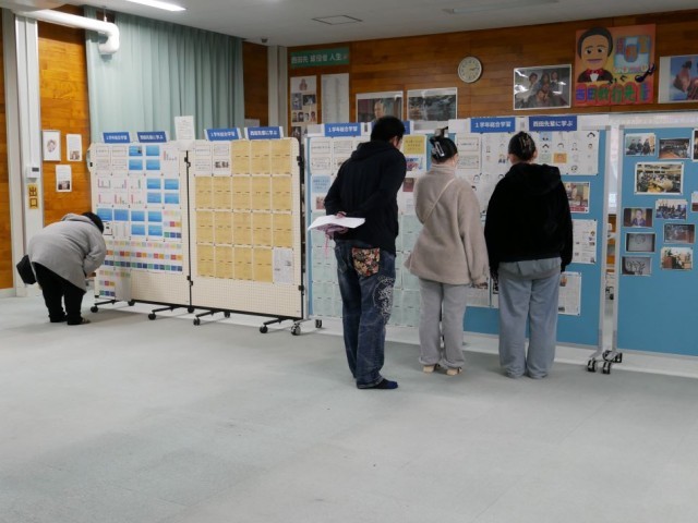 懇談会終了後に、西田敏行先輩 学習資料室へ足を運んでくださった方もいらっしゃいました。生徒の学習の足跡をご覧いただけたことと思います。今後も学習は続きますので、まだまだ展示物は増えていきます。ご来場いただいた皆様、ありがとうございました。