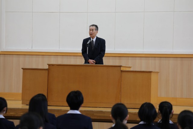 同窓会長の古川様からは、「高校3年間は人生で一番楽しく、そして人生を決める時期でもある。常に夢をもち、小原田中卒業の自信と誇りをもってがんばってほしい」とのお言葉をいただきました。また、西田敏行さんの2つ後輩ということで、中学時代の貴重な逸話もお聞きすることができました。