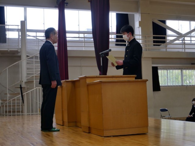 同窓会新入会生の代表者が、「母校への想いを大切に、小原田中の発展に寄与していきたい」と力強い誓いの言葉を述べました。