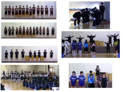 各部とも、メンバー紹介や決意の発表を堂々と述べ、吹奏楽部は、迫力ある演奏を全校生に披露しました。その後、当日の活躍を願って、全校生で熱いエールを送りました。