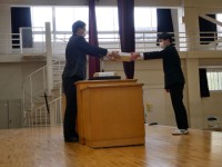 そこで、本校では「クリマスク」を購入し先生方に配付しました。感染症対策として飛沫を防ぐことができ、透明なので口元が見え、表情が読み取れます。水洗いもでき、繰り返し使える利点もあります。