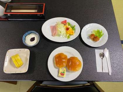 今日の朝食メニューです。各ペンションとも同じメニューとなっています。