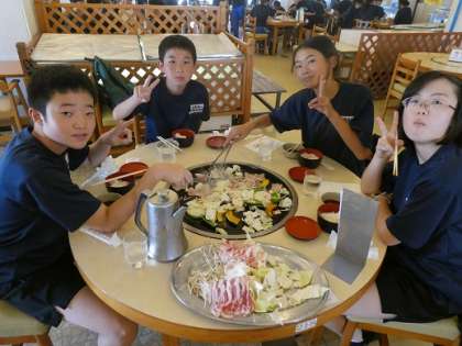 昼食は少人数班でのBBQでした。笑顔で食事を楽しむことができました。みんなで食べる食事の味は格別です。