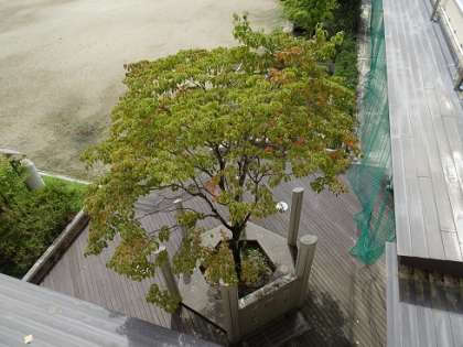 ハナミズキの葉が少し赤味を帯びてきました。学校のあちらこちらでも秋の気配が漂い始めました。