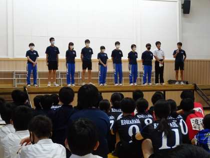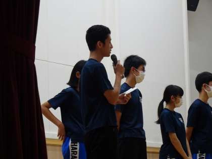 校長先生のお話の後、3年生の旧部長達からの激励の言葉がありました。総合大会出場が叶わなかった旧部長達からは、想いのこもった温かみのある後輩達へのメッセージが伝えられました。