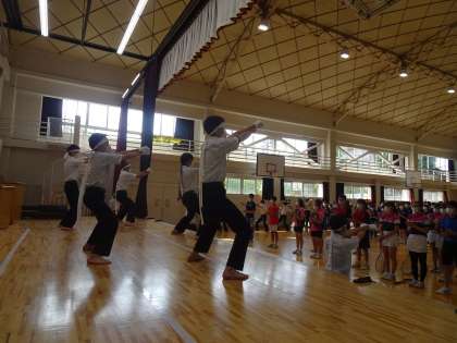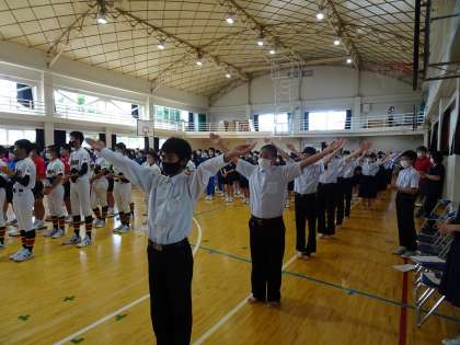 応援団の登場です。校歌、各部へのエール、手拍子応援と続きます。