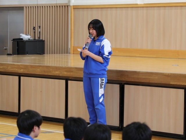 壮行会に先立ち、今年度最初の受賞報告会があり、テニス部2名の活躍を称えました。これから受賞報告がたくさん聞けることを期待しています。