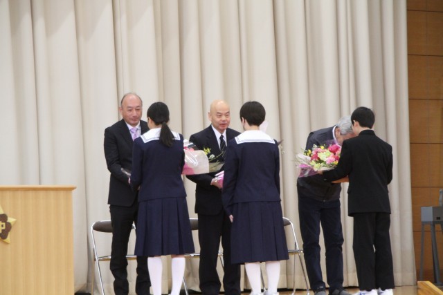 今年度の人事異動により、本校から6名の先生方が転出されます。6名の先生方には、様々な面において、守中生を支えていただき、ありがとうございました。新任地におきましても、指導力を十分に発揮し活躍することを願っています。