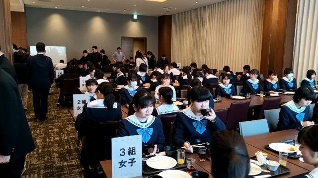 修学旅行2日目です。おいしく朝食を食べています。今日は東京班別自主研修、夕方からTDSです。頑張ってください。