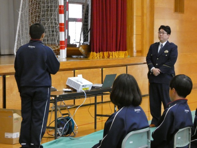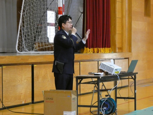 田村駐在所の方をお招きし、交通安全教室を行いました。自転車による事故を防ぐために注意しなければならないことを、具体的に学ぶことができました。