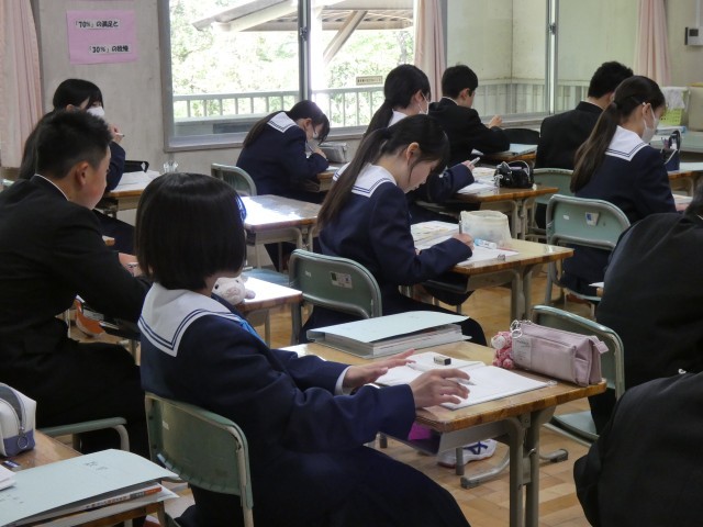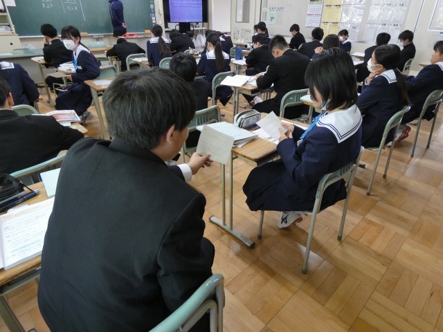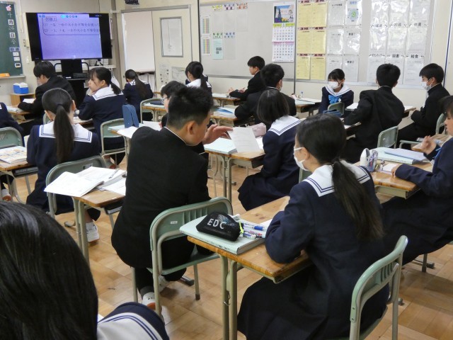 1年生は正負の数を学習しています。「-5」と「ー3」では、どちらが大きいのかを「数直線」という言葉を使って説明しています。