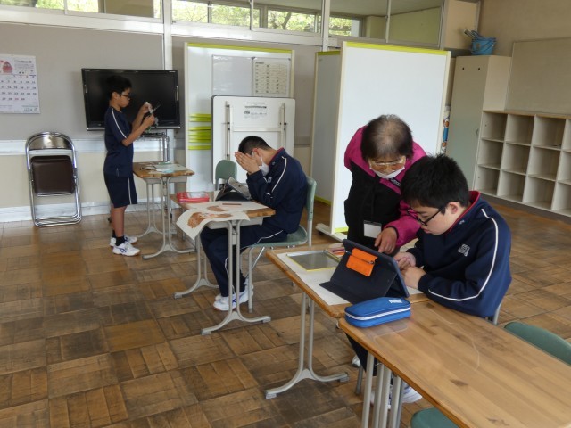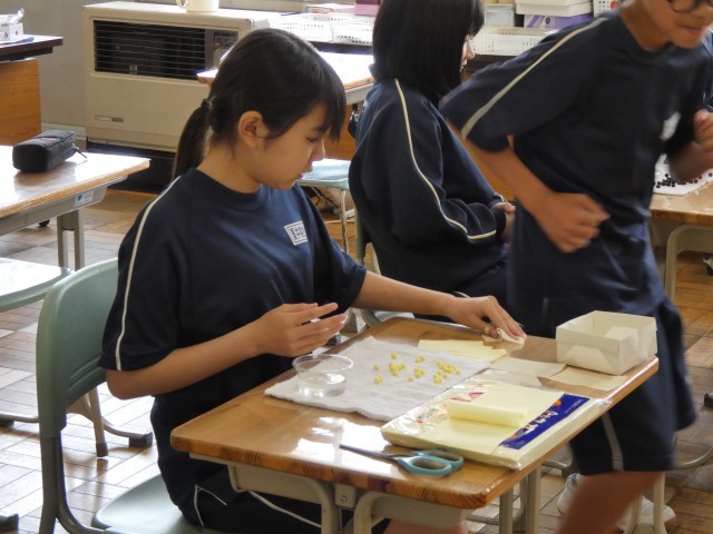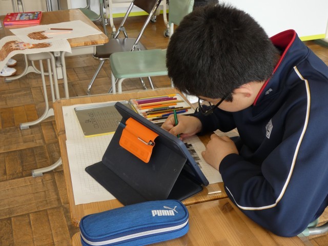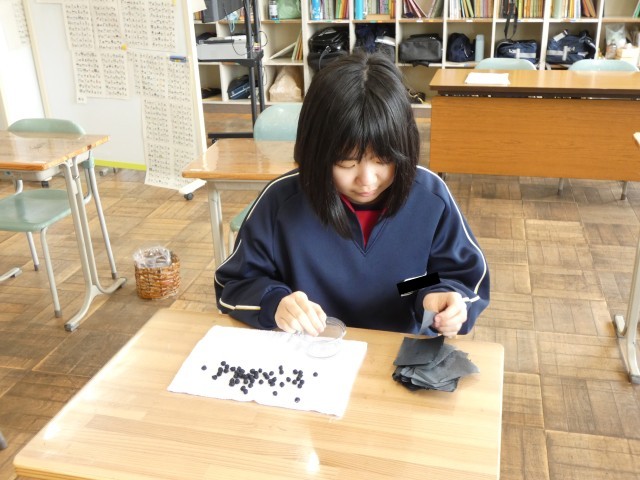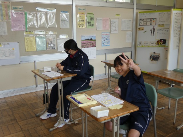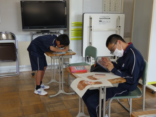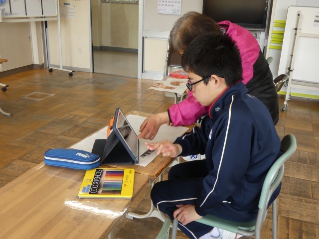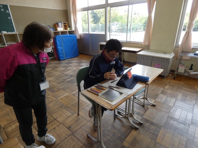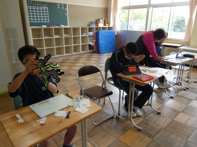 うつみね学級の作業の授業です。男子生徒はフェルトアート、女子生徒はお花紙に取り組んでいました。