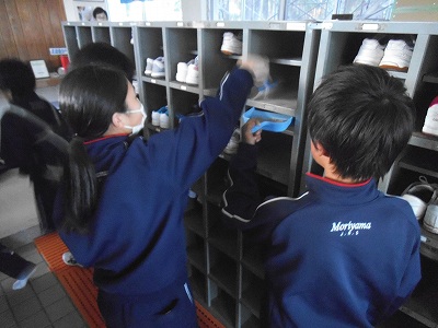 放課後、下足入れをきれいに清掃していました。毎日使う下足入れ、きれいだと気持ちが良いですよね。誰かの苦労のおかげで快適に生活していること、改めて感謝です。