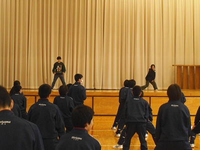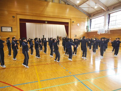 1年生のダンス授業。左右に移動する動きが加わりダイナミックになってきました。集団で踊るとお腹の底からのパワーが伝わってきますね。仕上がり順調です。